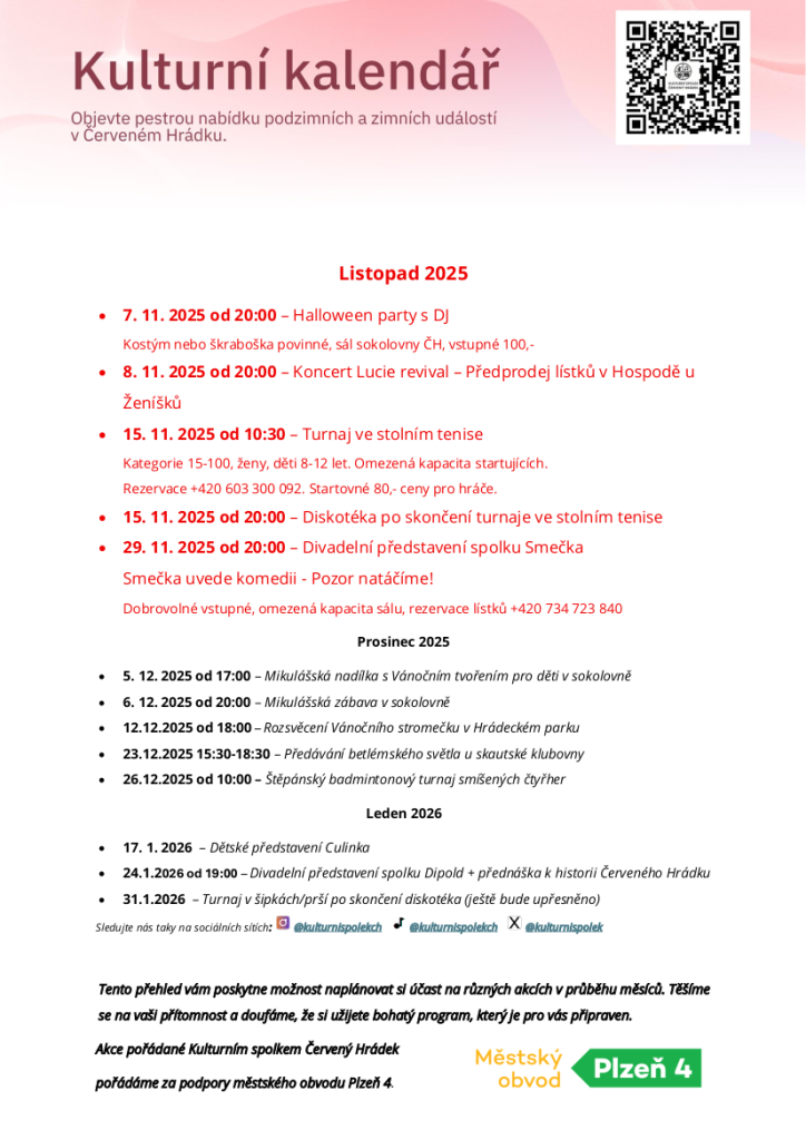 15. 11. 2025 od 10:30, Červený Hrádek, Kategorie 15-100, ženy, děti 8-12 let. Omezená kapacita startujících. Rezervace +420 603 300 092. Startovné 80,-, ceny pro hráče.